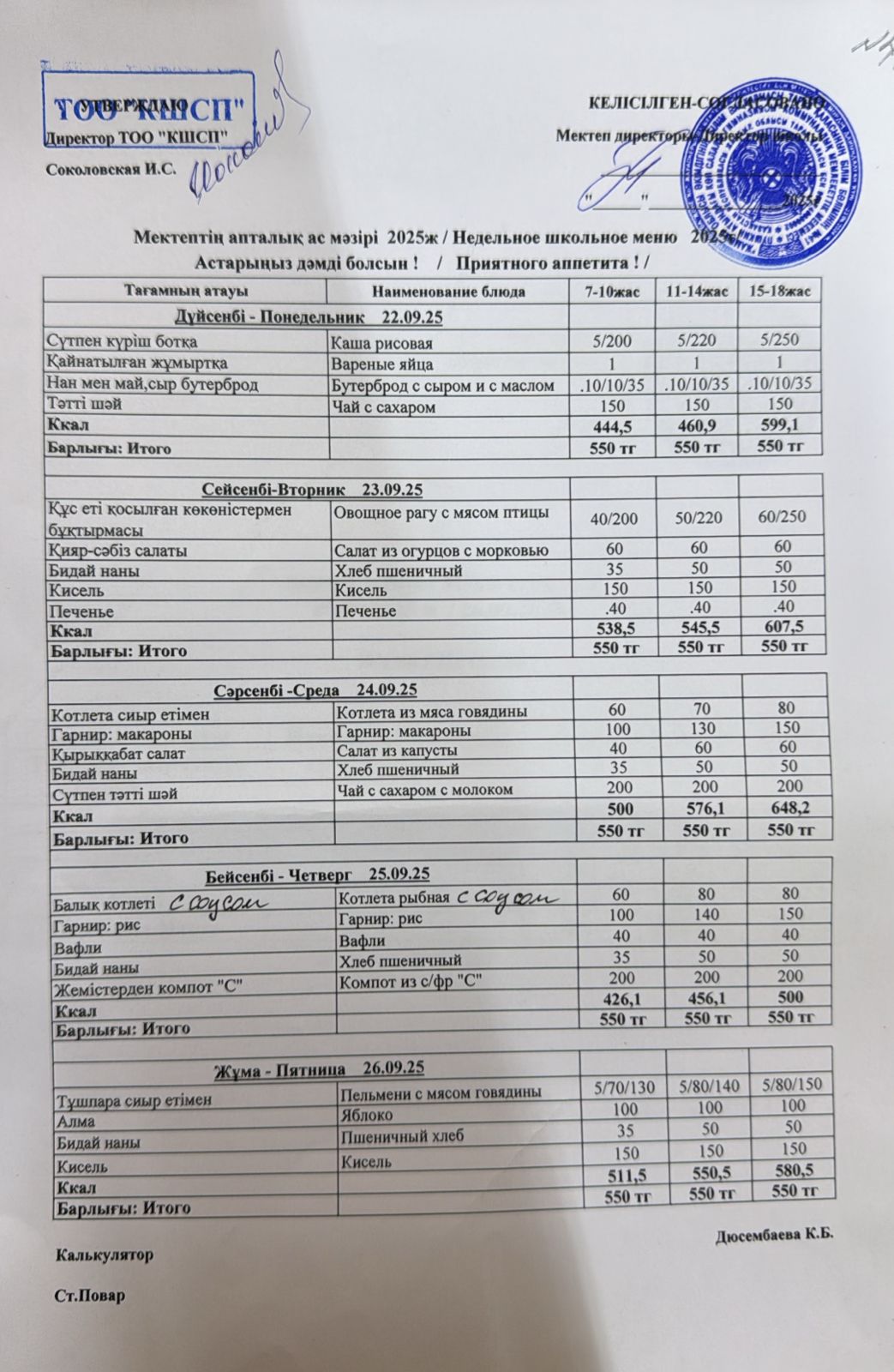 Ас мәзірі 22.09.2025-29.09.2025 » Коммунальное государственное учреждение "Гимназия №41 имени А.С. Пушкина" отдела образования города Тараз Жамбылской области